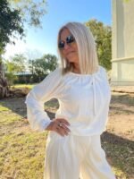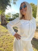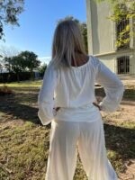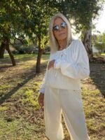 “CAMISA DE LINO DE VERANO, LIVIANA Y FRESCA, PERFECTA PARA ESTAR CÓMODA EN INTERIORES CALEFACCIONADOS. COMBINADA CON LOS TEJIDOS ARTESANALES DE ALMA BRAVA, TE ABRIGA AL SALIR Y TE PERMITE DESABRIGARTE CON FACILIDAD AL LLEGAR A UN LUGAR CERRADO DONDE HACE CALOR.”(COMBINA CON PANTALÓN TIZY) LA MODELO ES TALLE S(COMBINA CON PANTALÓN TIZY) LA MODELO ES TALLE S – ANCHO DE PECHO( DE SISA A SISA 55 CM, LARGO TOTAL 58 CM