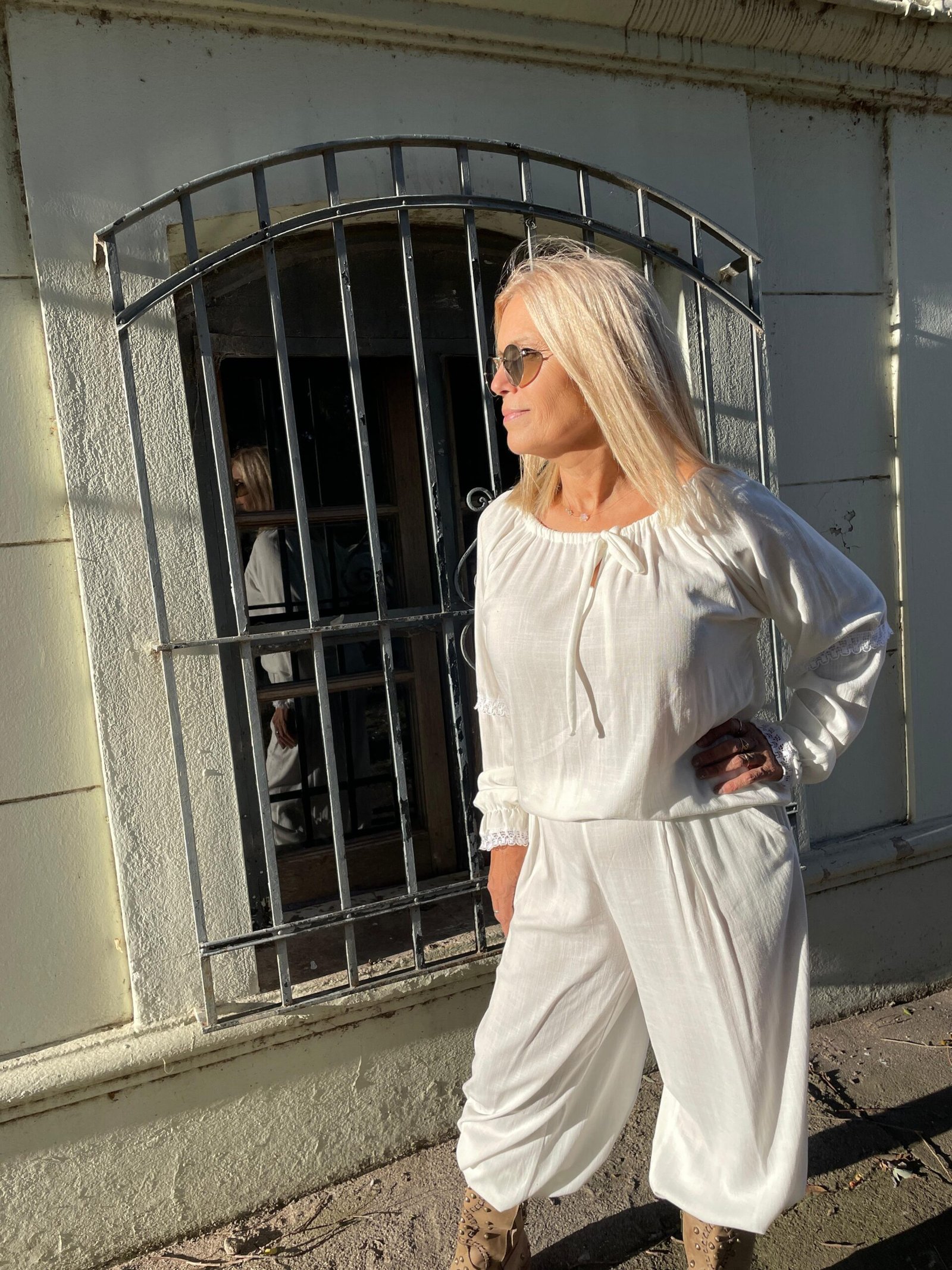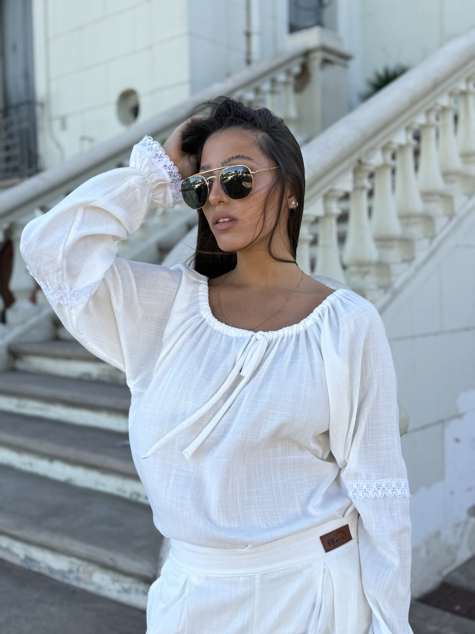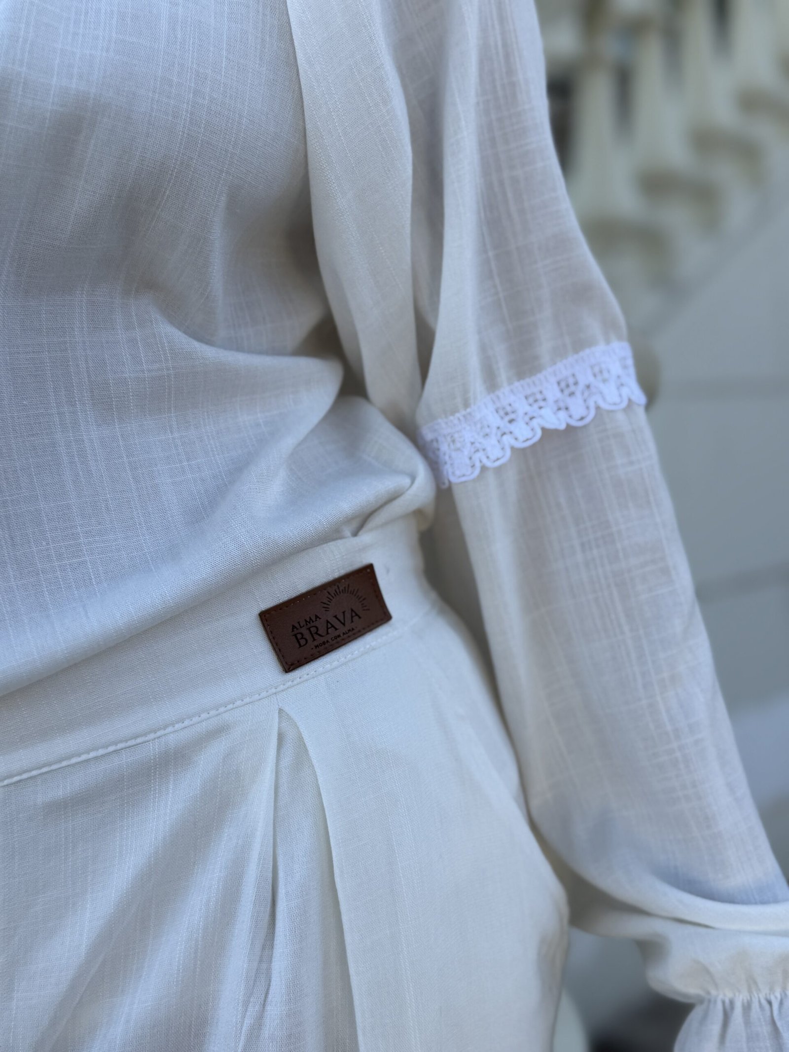 “CAMISA DE LINO DE VERANO, LIVIANA Y FRESCA, PERFECTA PARA ESTAR CÓMODA EN INTERIORES CALEFACCIONADOS. COMBINADA CON LOS TEJIDOS ARTESANALES DE ALMA BRAVA, TE ABRIGA AL SALIR Y TE PERMITE DESABRIGARTE CON FACILIDAD AL LLEGAR A UN LUGAR CERRADO DONDE HACE CALOR.”(COMBINA CON PANTALÓN TIZY) LA MODELO ES TALLE S(COMBINA CON PANTALÓN TIZY) LA MODELO ES TALLE S – ANCHO DE PECHO( DE SISA A SISA 55 CM, LARGO TOTAL 58 CM