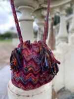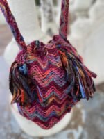 BOLSO MEDIANO TEJIDO AL TELAR. CON CIERRE Y CORREA DE LANA, DISEÑO ORIGINAL, PRÁCTICO Y MUY COMBINABLE.