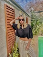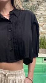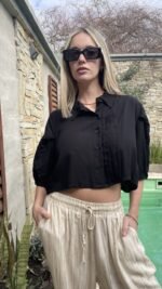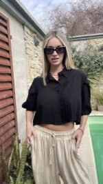CAMISA BULGARIA ALMA BRAVA, CROP, CON MANGAS ABULTADAS FRESCA Y FEMENINA.