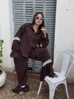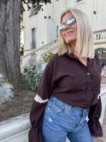 CAMISA DE LINO INVIERNO, CON DETALLE DE PUNTILLAS DE ALGODÓN. EXCELENTE CAÍDA.