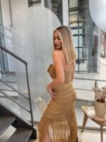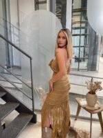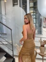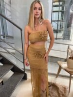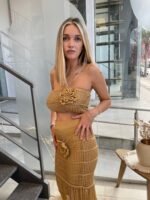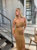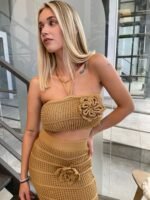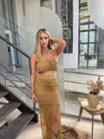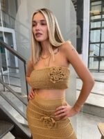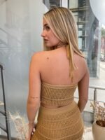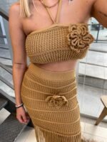 CONJUNTO TEJIDO DE HILO CON DETALLES Y FLECOS.