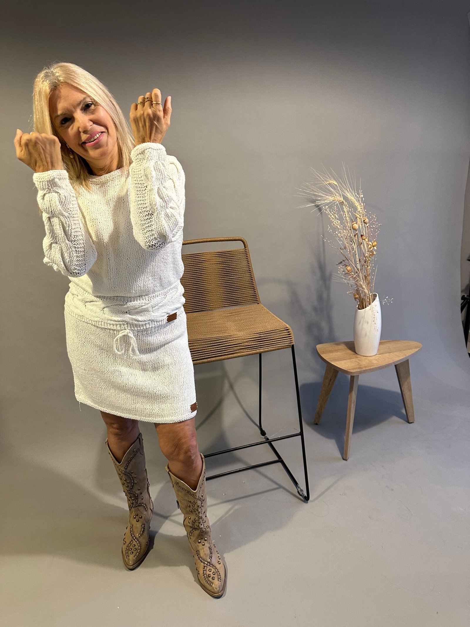 CONJUNTO DE HILO ALMA BRAVA GUSTY DE SEDA ARTESANAL TEJIDO A MANO.