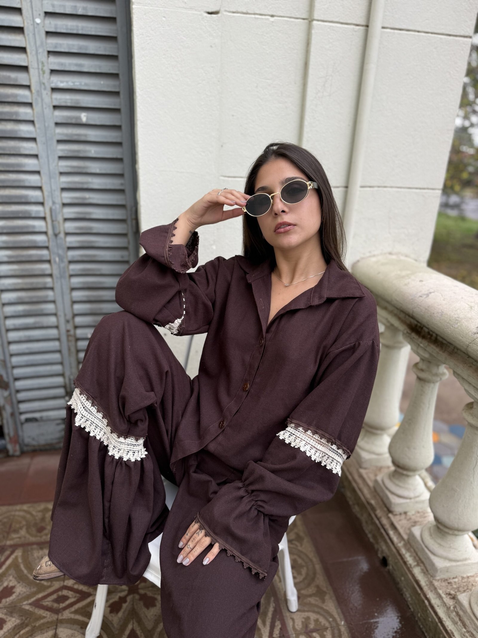 PANTALÓN DE LINO INVIERNO, CON DETALLE DE PUNTILLAS DE ALGODÓN. EXCELENTE CAÍDA.