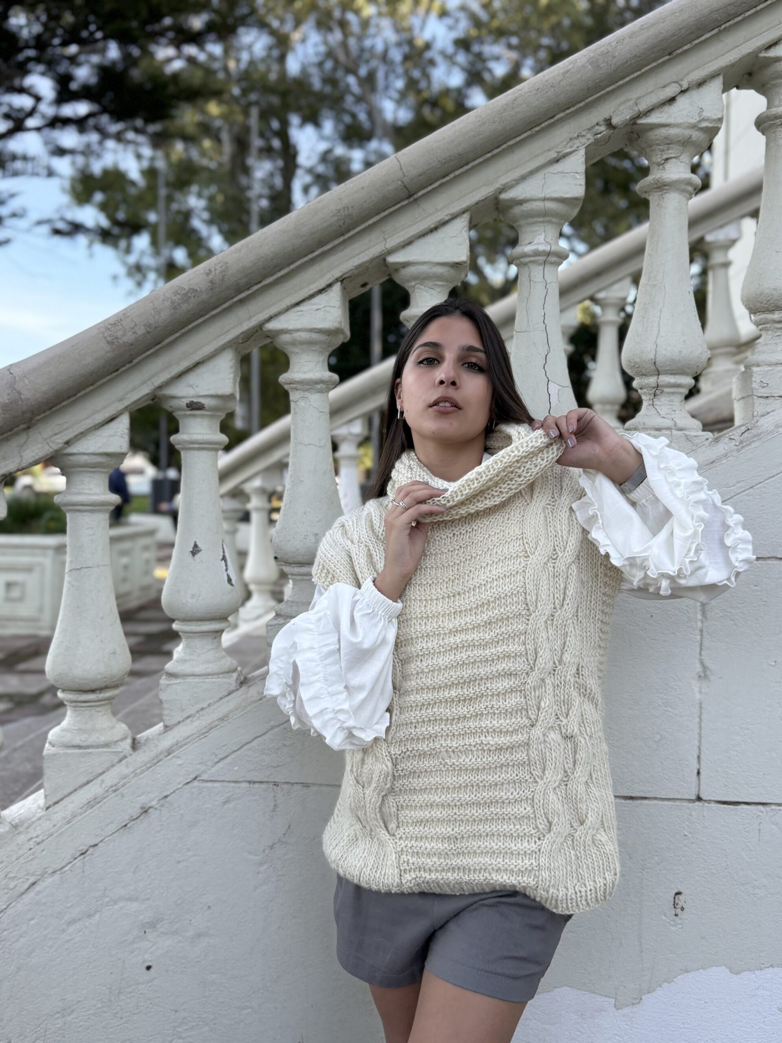 “Cuello tejido a mano en lana SUAVE, de excelente calidad. Su diseño versátil permite usarlo también como vincha, adaptándose a distintos estilos y necesidades. Es cómodo y aporta un toque artesanal único. Ideal para combinar con nuestro chaleco Trenzy y completar un look bohemio y actual.”