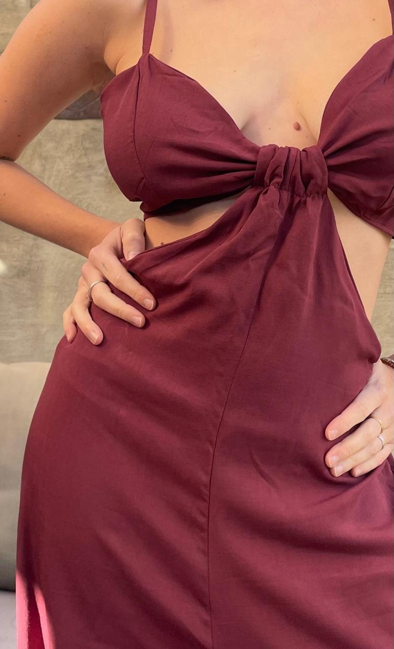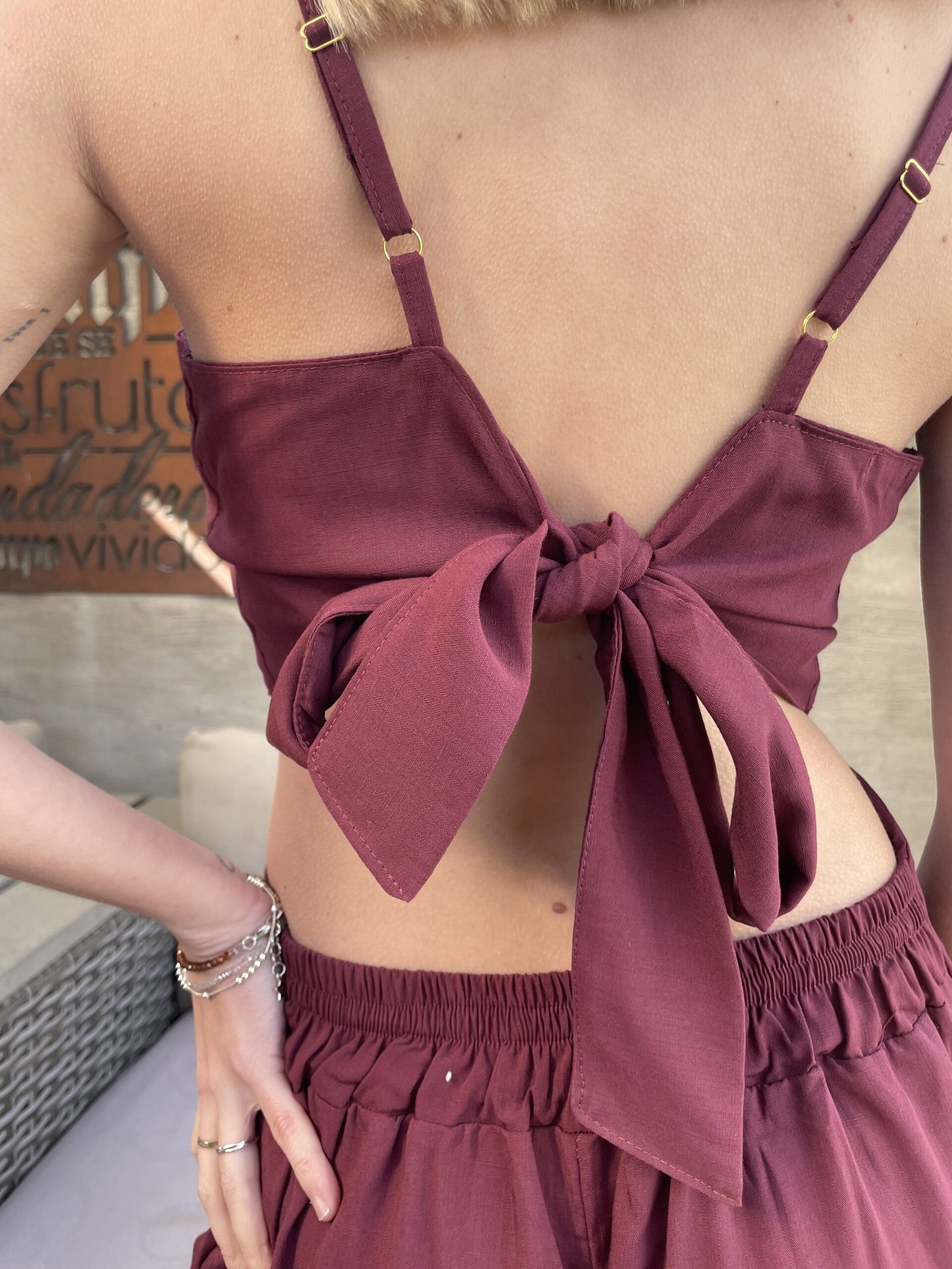 MONO DE LINO ALMA BRAVA, COLOR CHERRY, UN DISEÑO FRESCO Y ELEGANTE, COMBINA LO ROMÁNTICO CON LO AUDAZ.