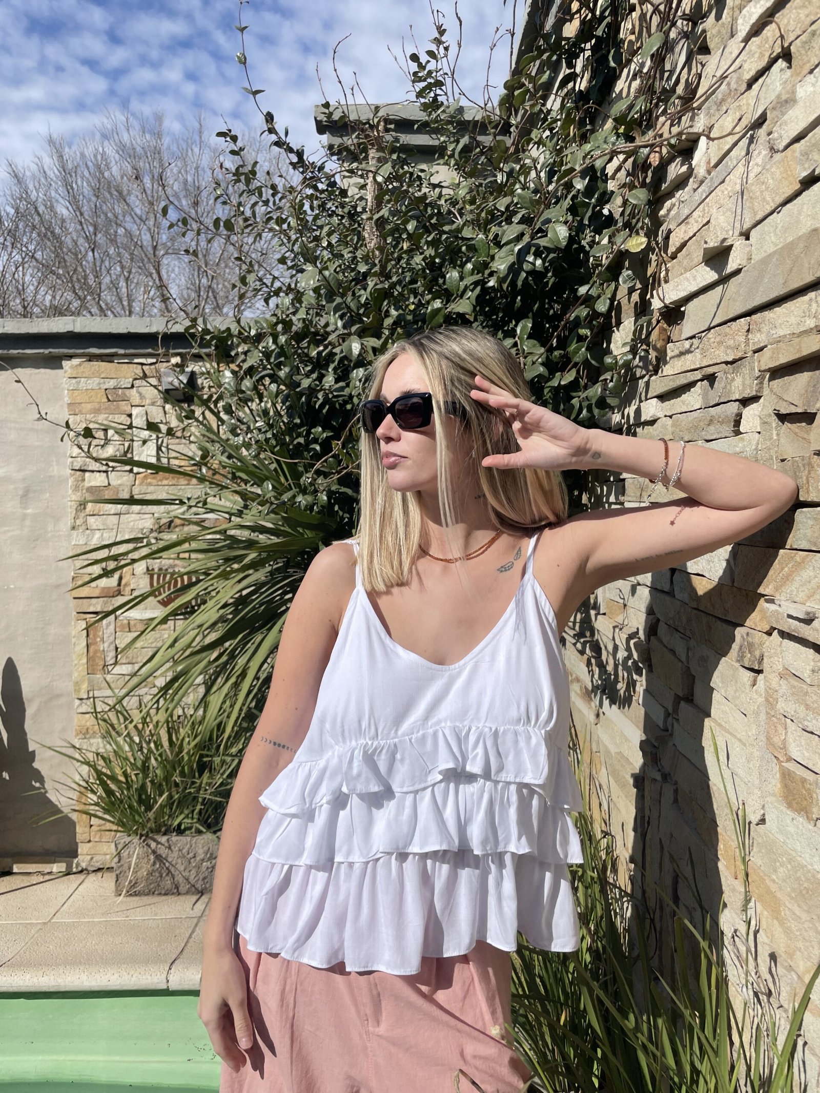 MUSCULOSA PARÍS ALMA BRAVA, CON VUELOS Y BRETEL REGULABLE , SE ADAPTA A CUALQUIER TIPO DE CUERPO, PARA QUE TE SIENTAS ÚNICA.