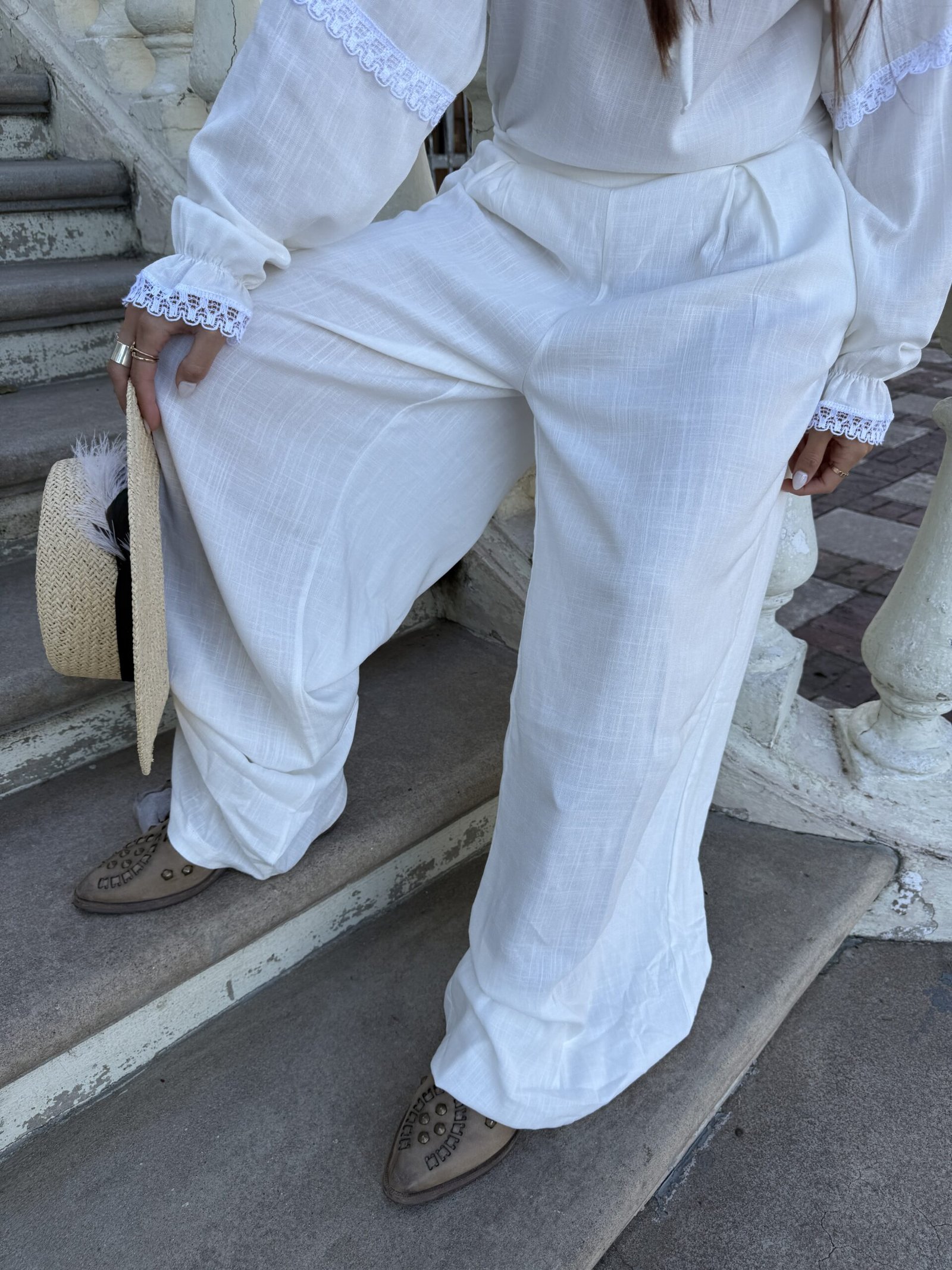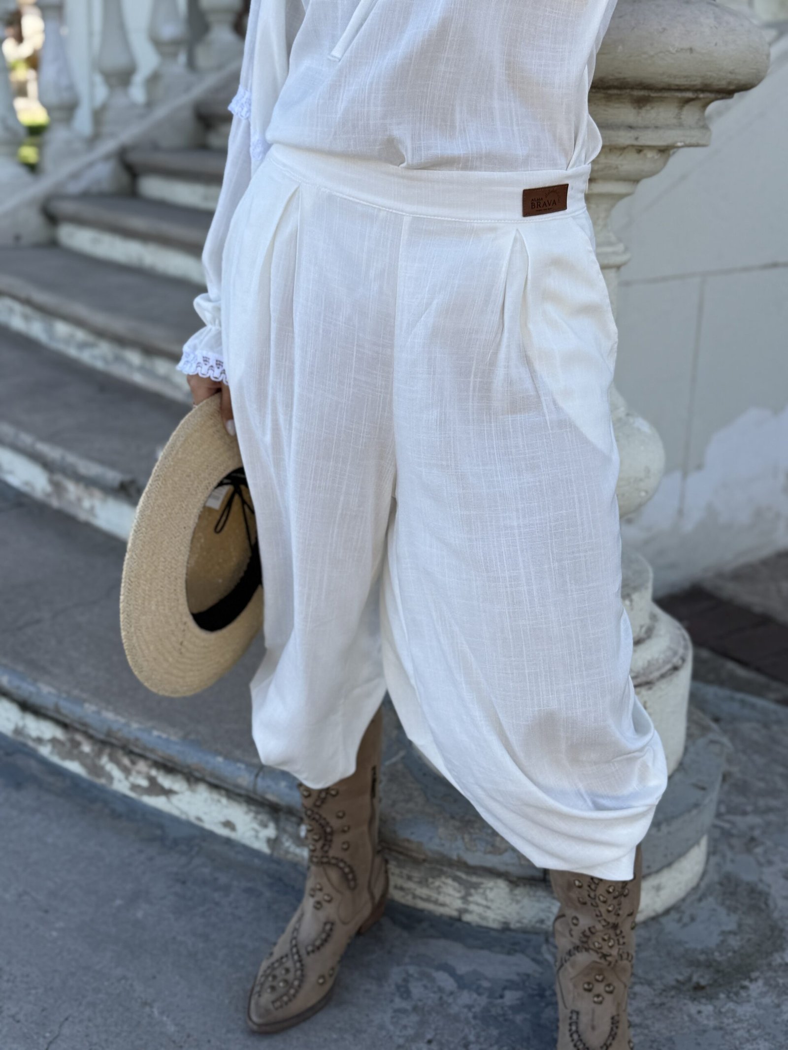 PANTALÓN DE LINO SUAVE, FRESCO Y LIVIANO. CORTE AMPLIO Y ELEGANTE. DE VERANO. COMBINABLE CON NUESTRA BLUSA TIZY PARA UN LOOK RELAJADO PERO SOFISTICADO.