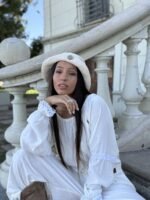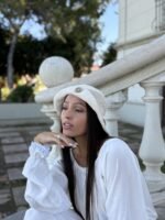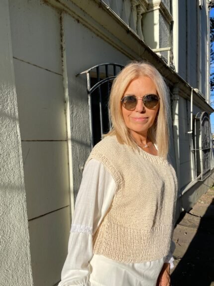 PILUSO DE HILO TEJIDO A MANO CON UN BOTÓN PARA LLEVAR COMO MÁS TE GUSTE AL FRENTE O ATRÁS. MARCANDO DIFERENCIA Y DISTINCIÓN.LA MODELO ES TALLE S